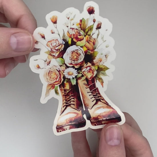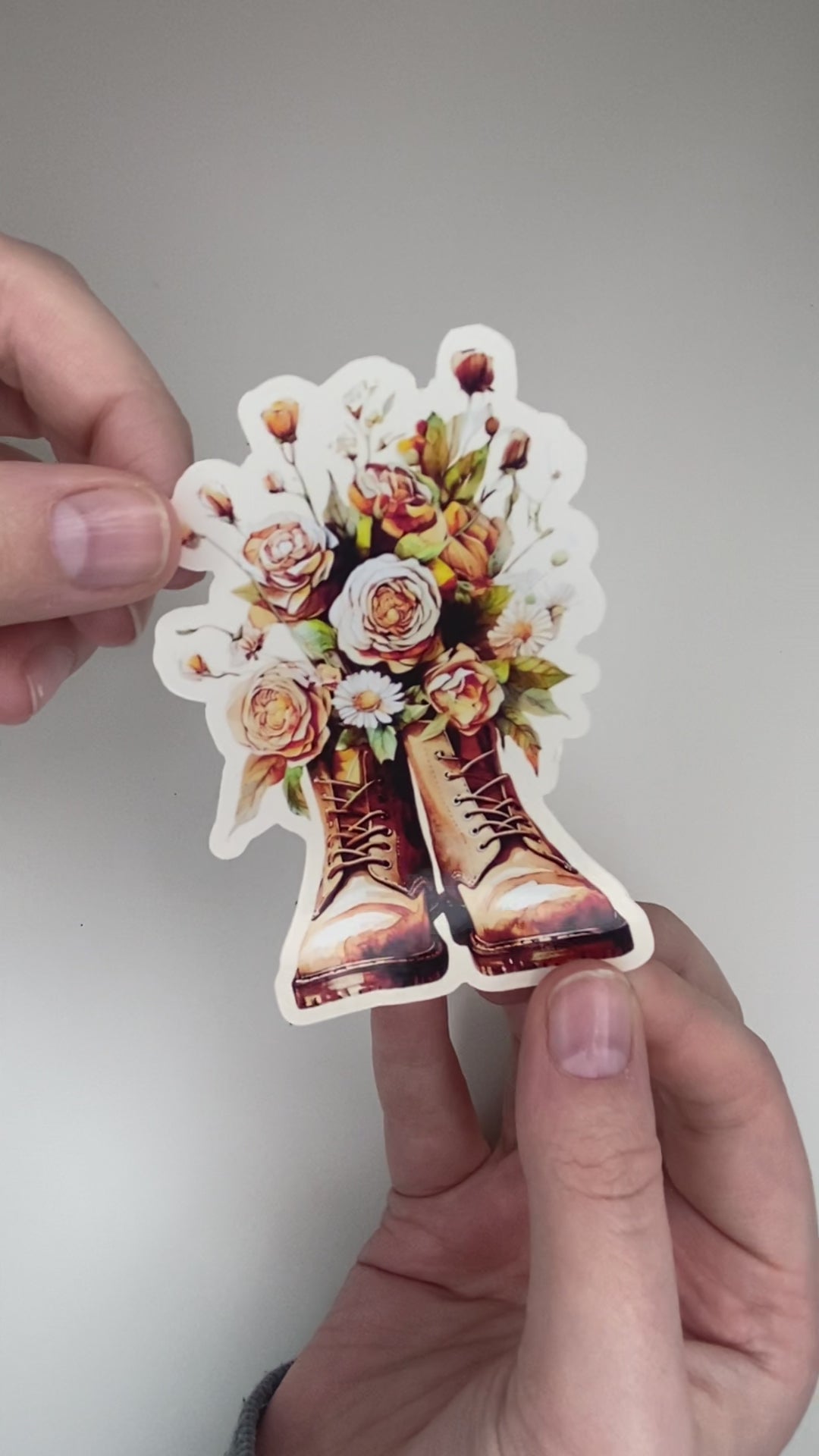 Ready to stomp out the mundane? The Combat Blooms sticker is here to add some serious flower power to your life! This glossy sticker features a pair of classic combat boots overflowing with beautiful wildflowers, proving that you can be both tough and tender.