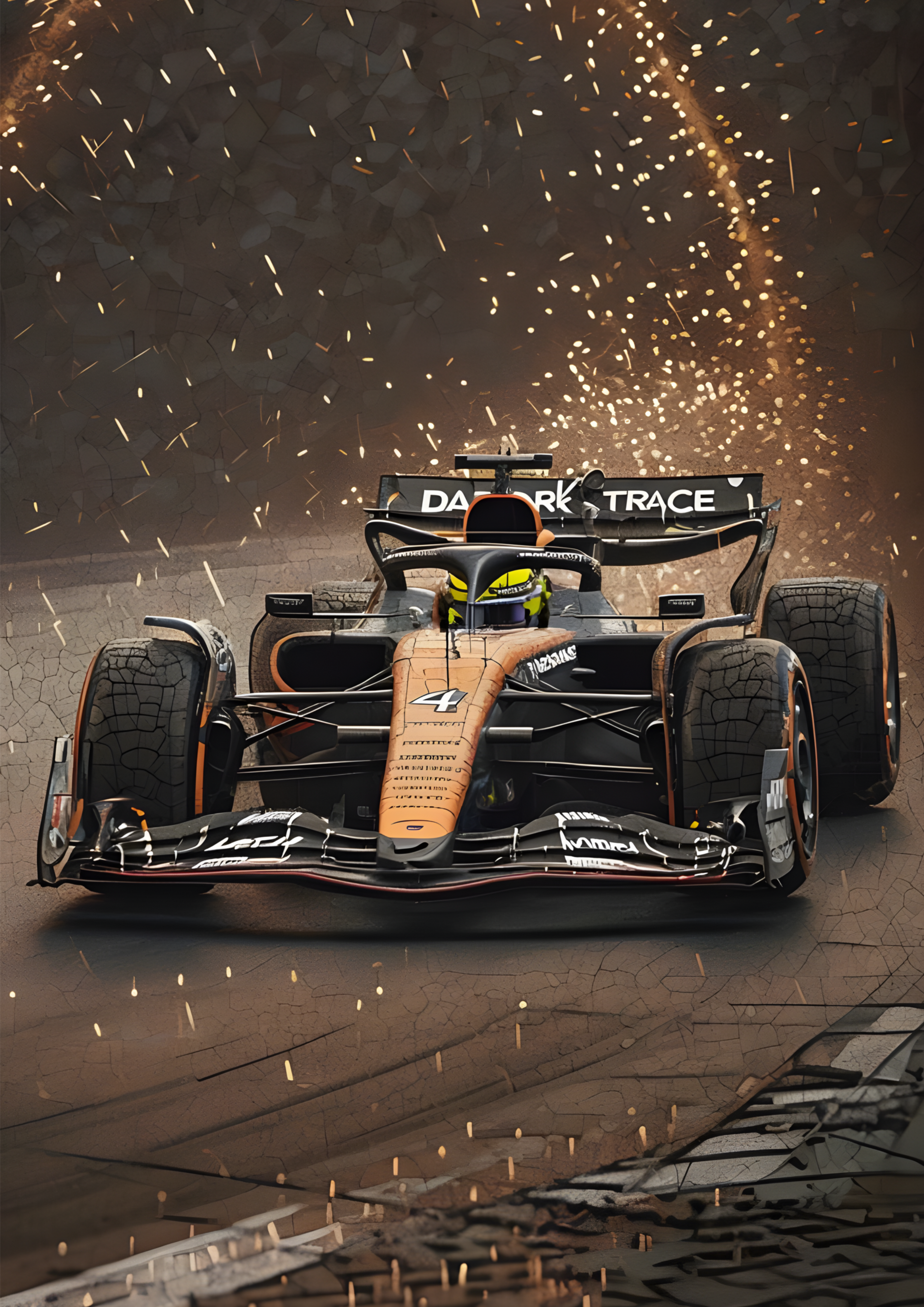 The print's intricate details and energetic atmosphere make it a striking centerpiece for a bedroom, office, or entertainment room. It’s a must-have for McLaren fans and F1 enthusiasts who want to celebrate their love for the team and the sport.