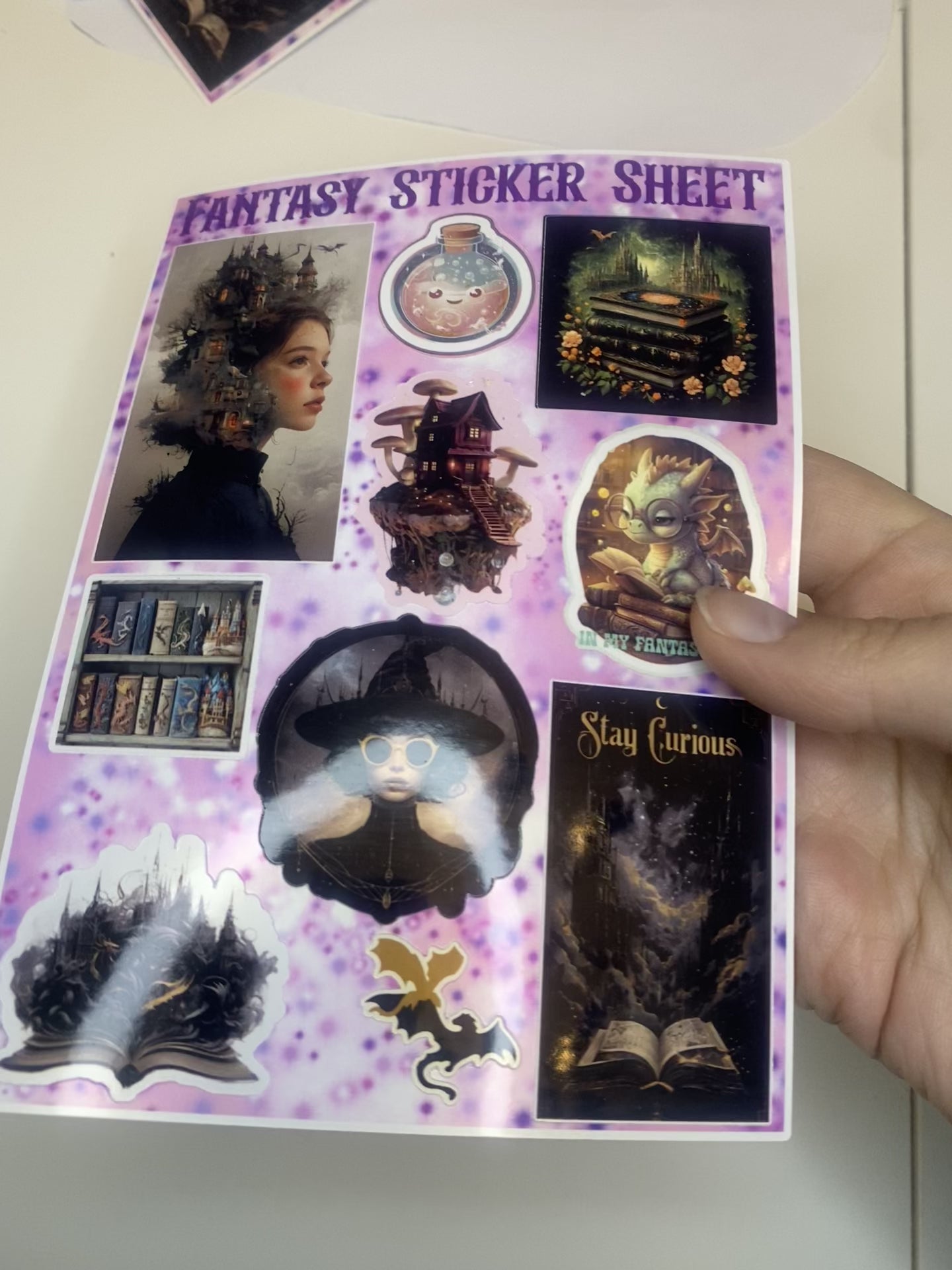Enter your very own fantasy era with this magical sticker sheet! This collection is a tribute to all things whimsical and otherworldly, perfect for adding a touch of magic to your grimoire, journal, or book of spells. Let your imagination take flight as you decorate your world with these enchanting designs.
