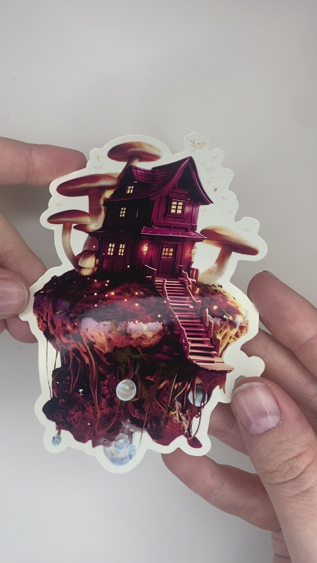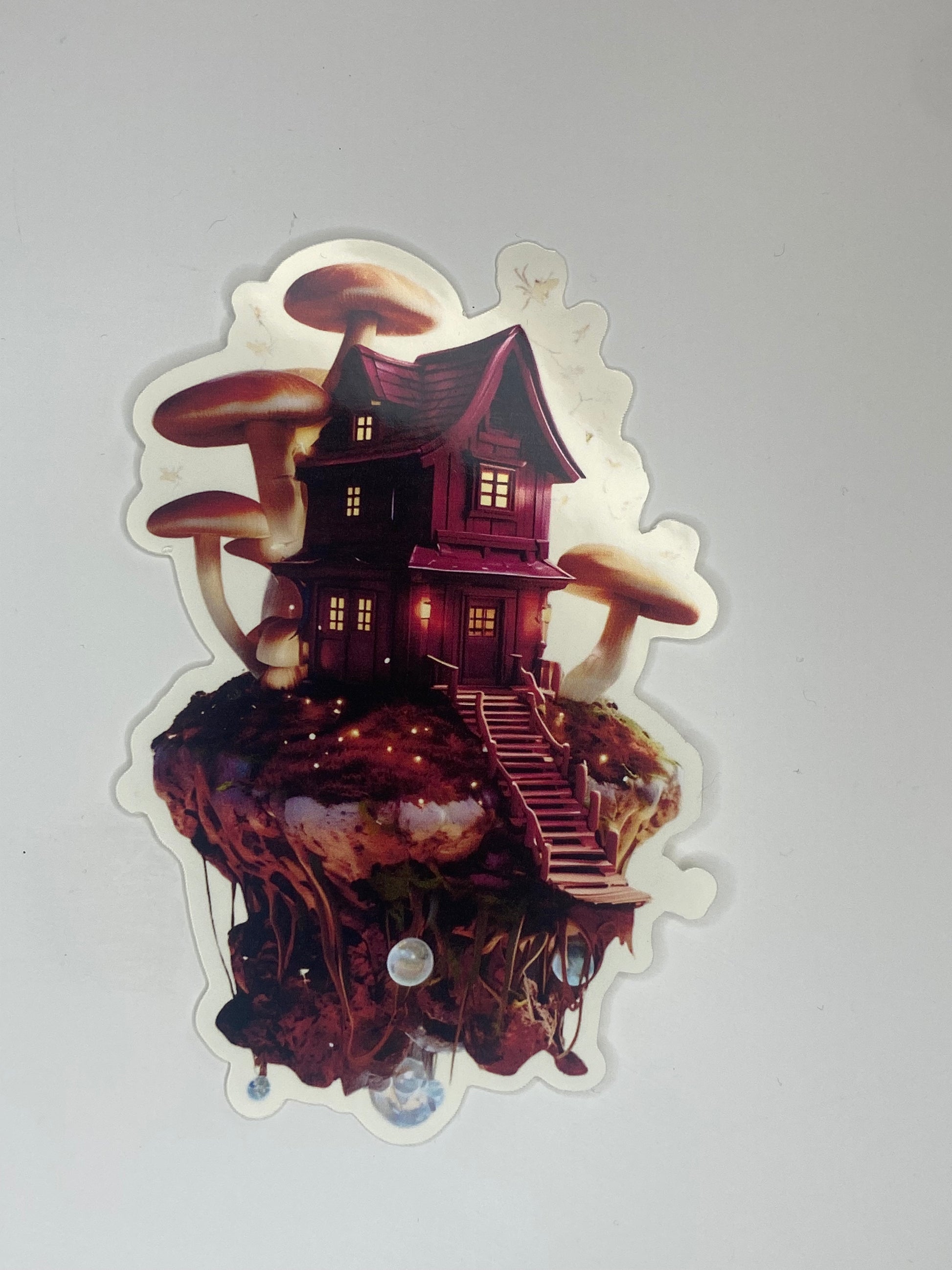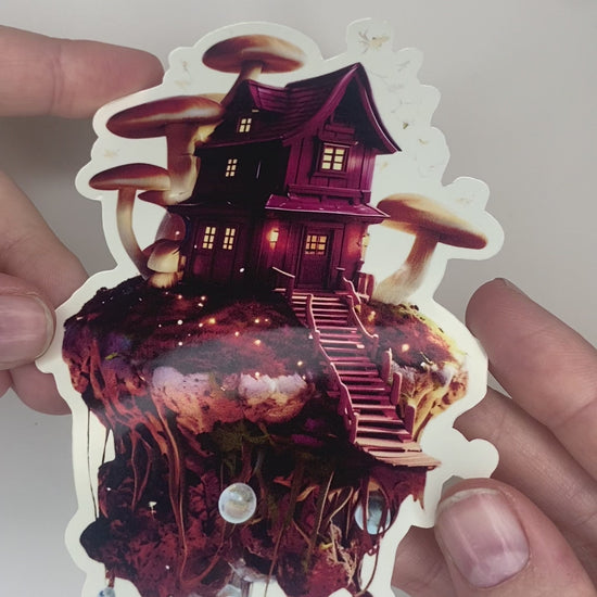 Escape to a world of pure imagination with the Fantasy Shroom sticker! This enchanting, glossy sticker features a whimsical house perched on a floating island, surrounded by a forest of magical mushrooms. It's a perfect piece of fantasy to add to your laptop, water bottle, or anywhere you want to create a little magic.
