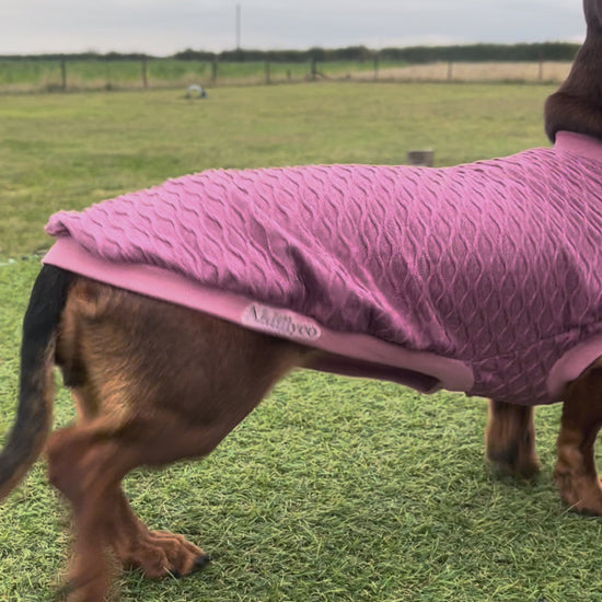 Let your little one step out in style in our stretchy top which is designed specifically for the unique shape of a Dachshund, ensuring a snug and comfortable fit that won't restrict their movement. The beautiful textured knit pattern give it a stylish, cozy feel, perfect for a crisp morning walk or a quick trip to the dog park. It's the perfect mix of comfort, style, and cuteness! 🐶✨