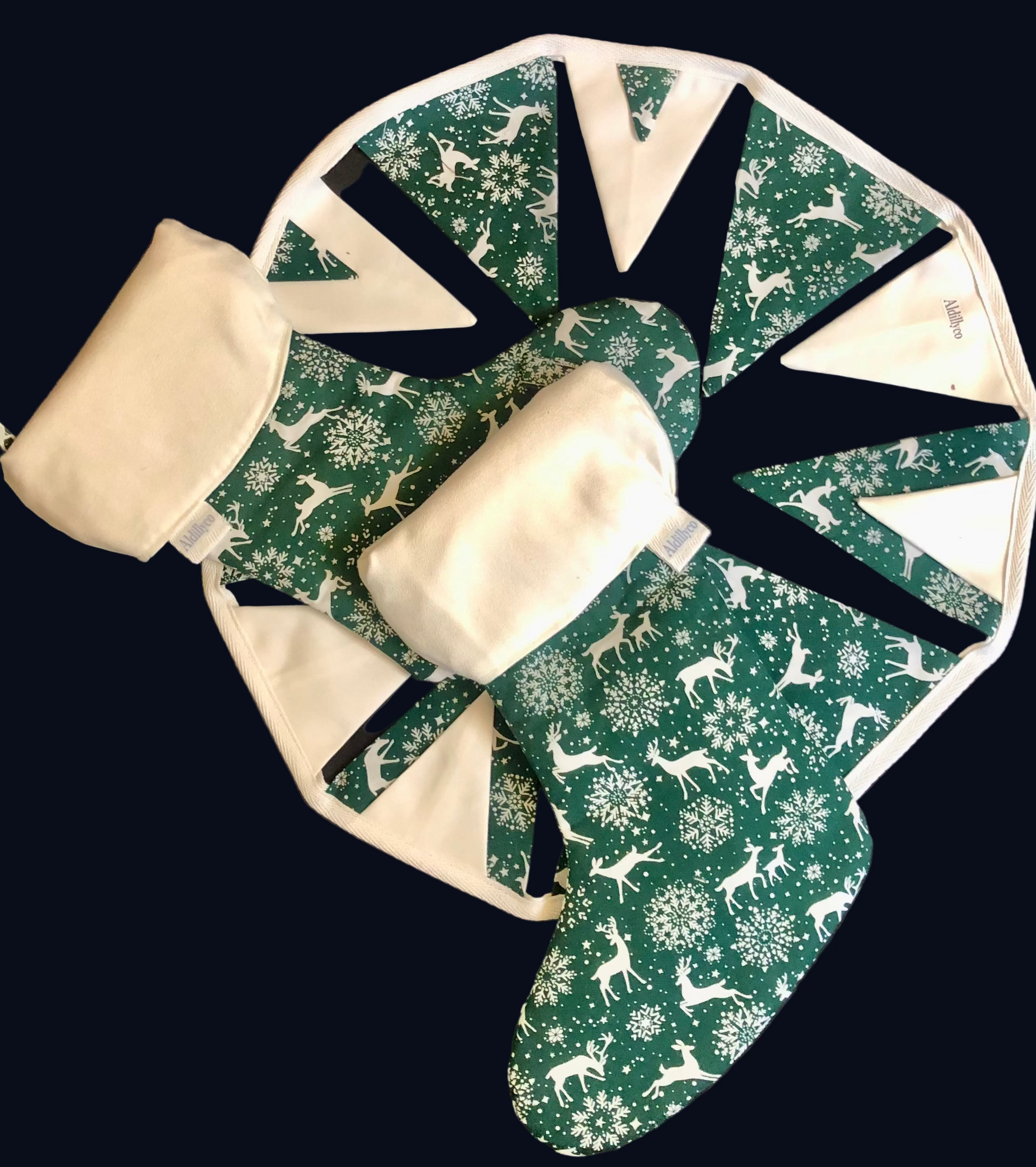 Crafted in a classic color palette of green and white, this garland features charming reindeer figures that will add classic element to any space. Perfect for creating an enchanting winter wonderland.