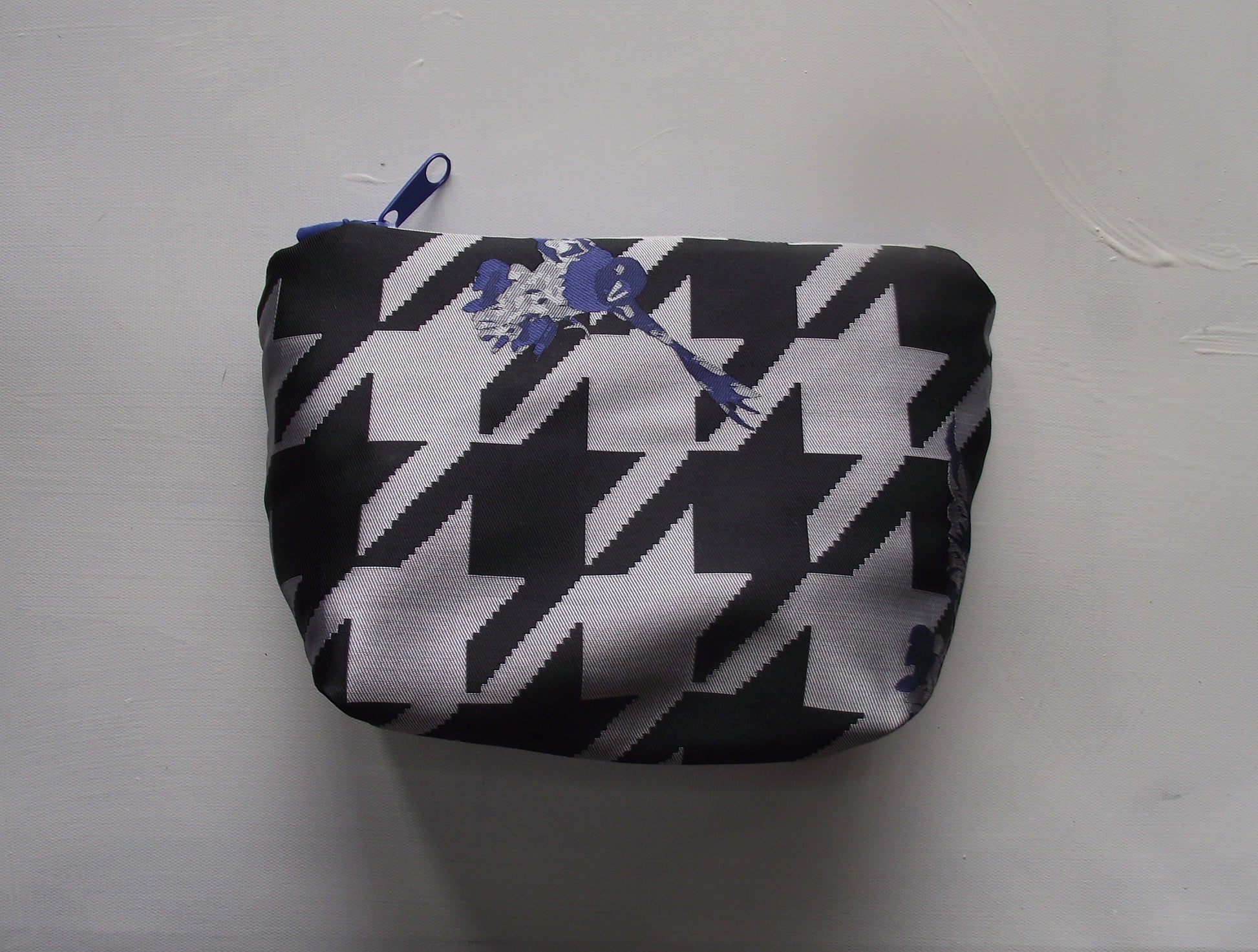 Featuring a sophisticated bluebird houndstooth pattern and a pop of blue from the zip pull, this pouch is a fun and functional accessory. Open it up to reveal a striking cobalt blue lining, adding an unexpected and vibrant flash of color. It's the perfect size for coins, cards, keys, or any other small treasures you need to keep handy.