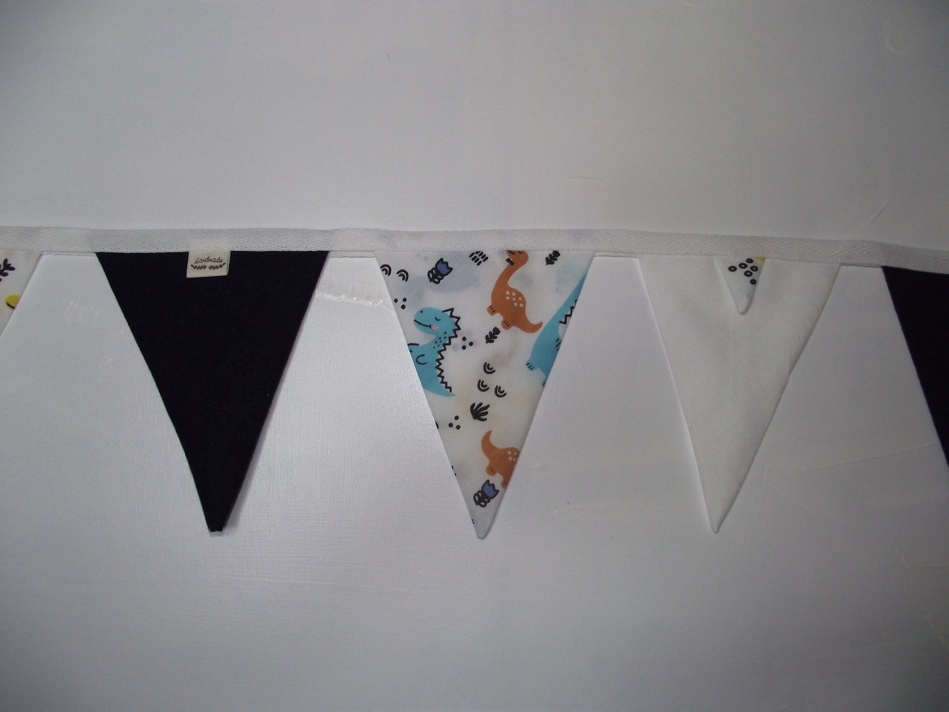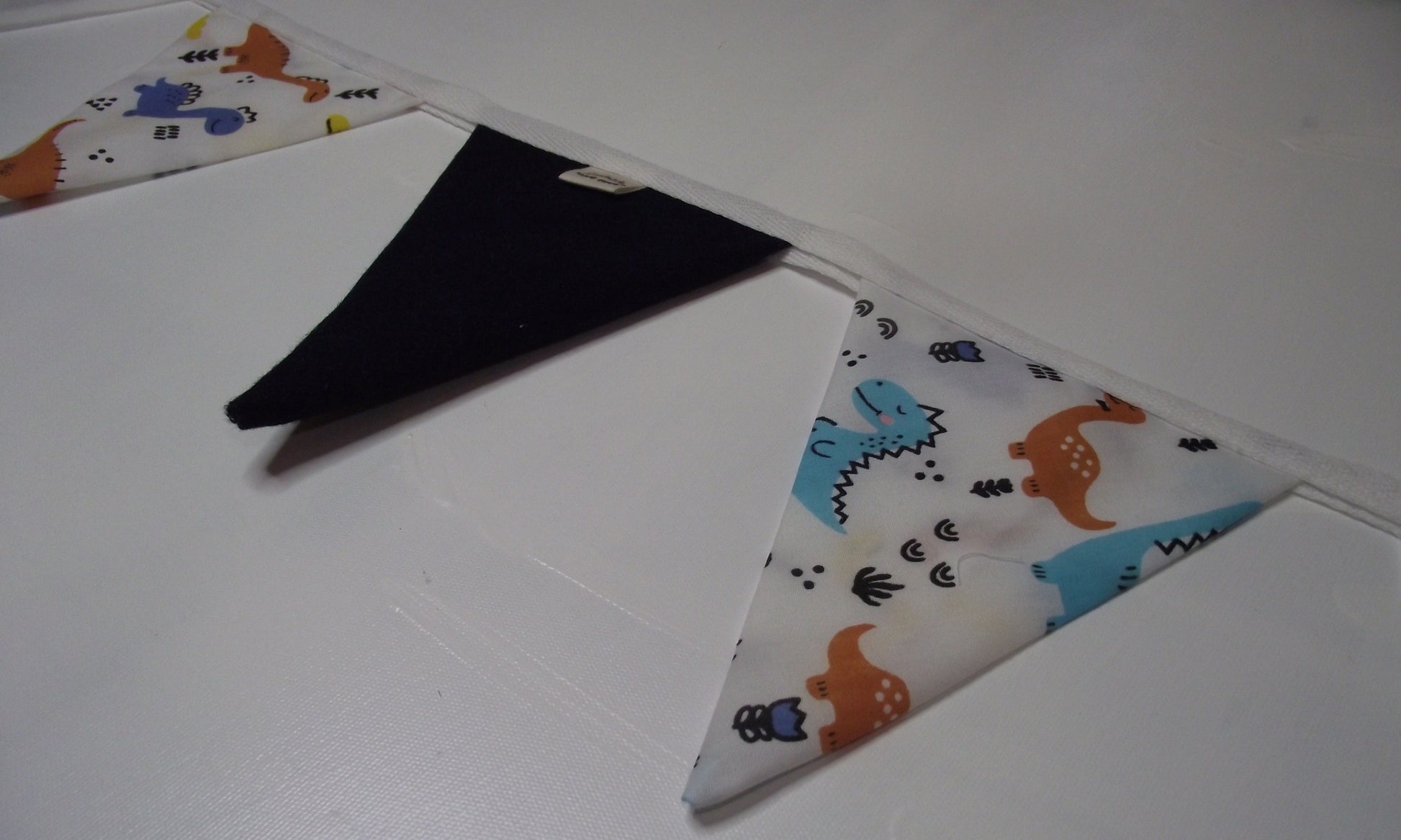 Transform your little one's room into a prehistoric paradise with our dino-mite bunting! Featuring a playful mix of cute dinosaur prints and a dark blue flags, this bunting is perfect for any aspiring palaeontologist.